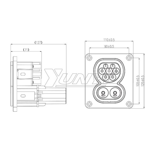 | 適用標(biāo)準(zhǔn):IEC 62196 額定電壓 :·DC:1000V ·AC:250V/440V 額定電流:·DC:80A/125A/150A/200A ·AC:16A/32A 溫度:-30℃~ +60℃ 防護(hù)等級:蓋上防護(hù)蓋:IP54 阻燃等級:UL94-V0 絕緣電阻:≥1000MΩ 機(jī)械壽命:≥10000次 端子溫升:<50K 環(huán)保要求:符合Rosh |
